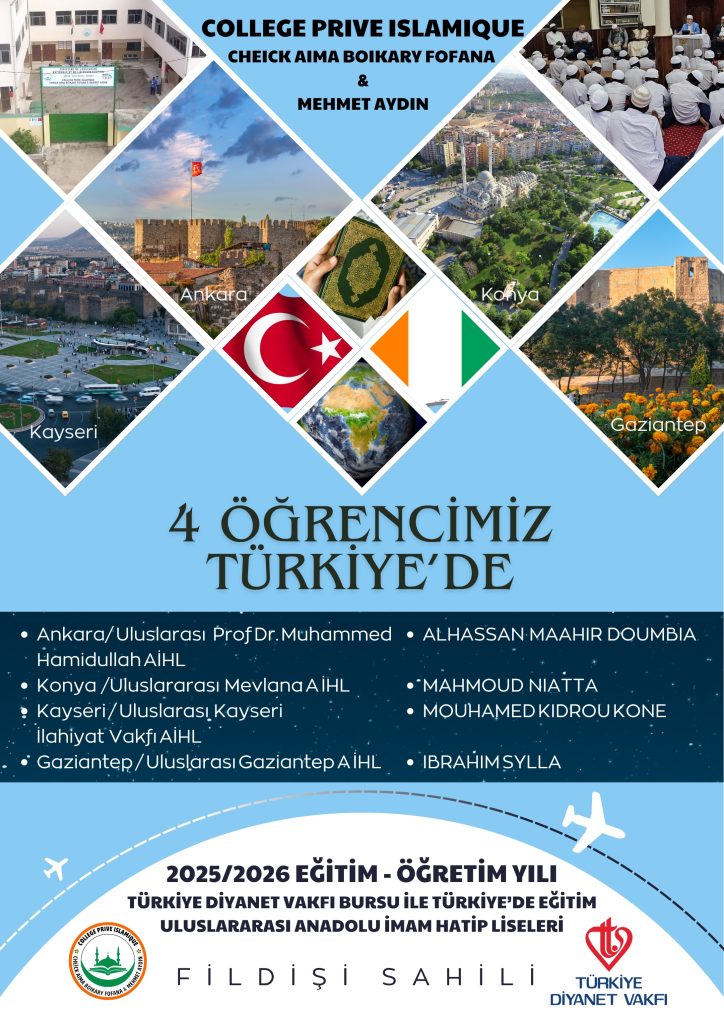 Vous avez été admis(e) au PROGRAMME INTERNATIONAL DE L’ÉCOLE SECONDAIRE IMAM HATIP D’ANATOLIE (UAİHL) grâce aux bourses Diyanet.
