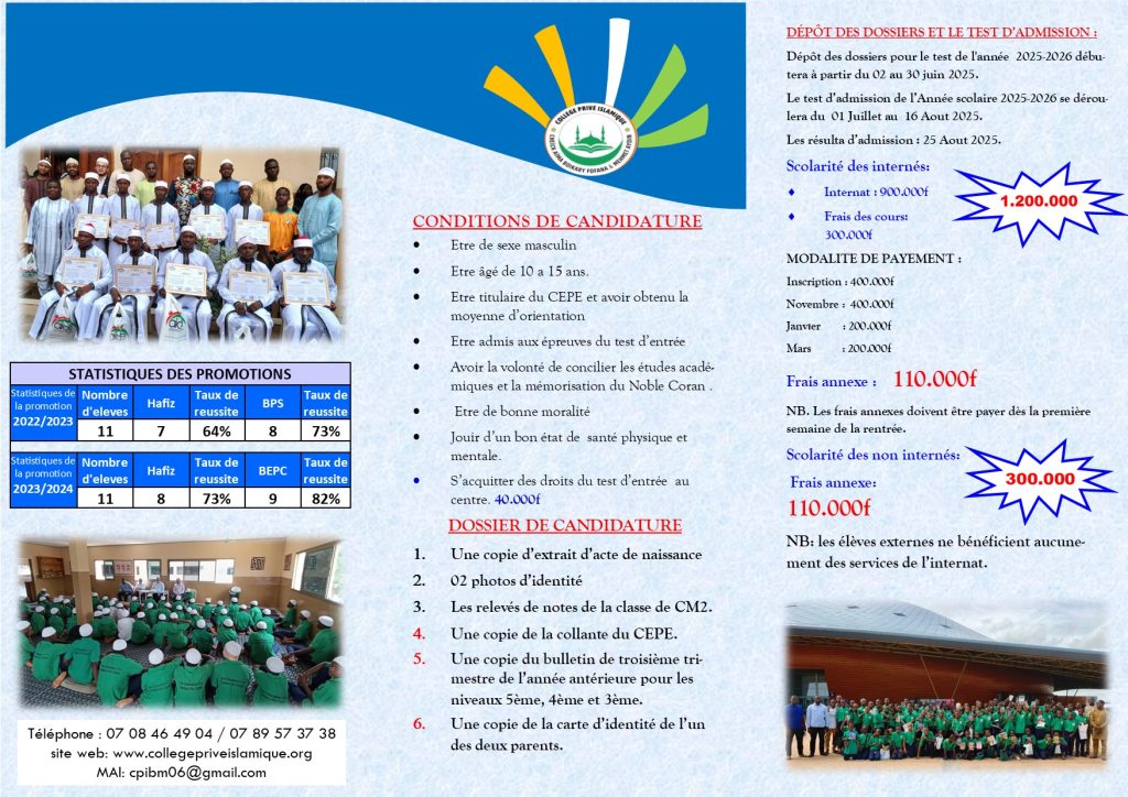 Nos inscriptions pour l’année académique 2025/2026 ont commencé